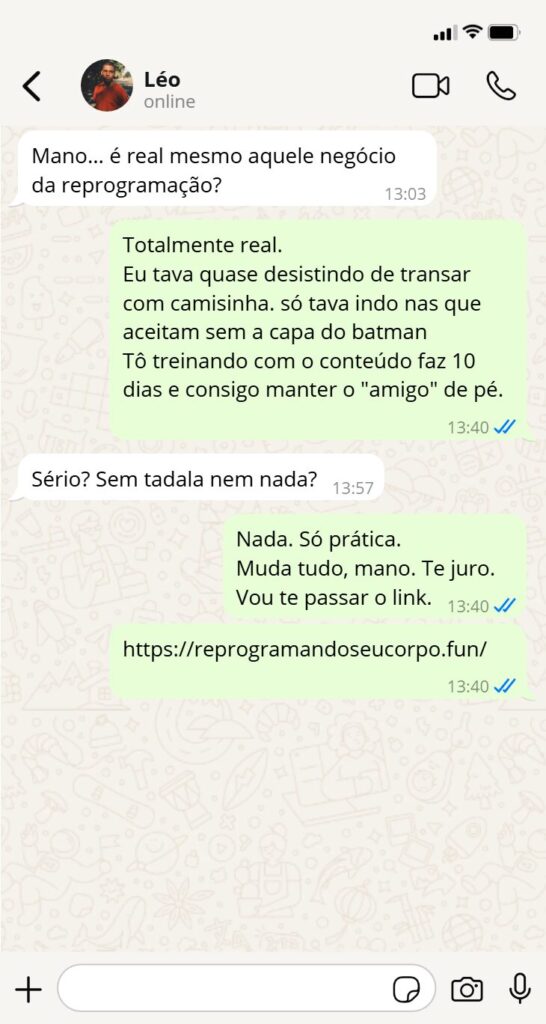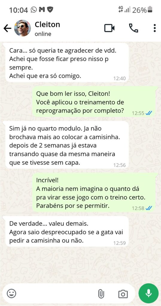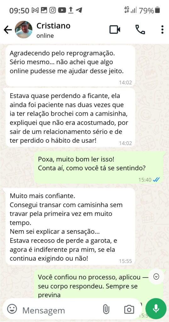 Reprogramando Seu Corpo é um treinamento criado especialmente para homens que perdem a ereção ao usar camisinha — uma dificuldade mais comum do que se imagina, mas que ainda é vivida em silêncio por muitos.